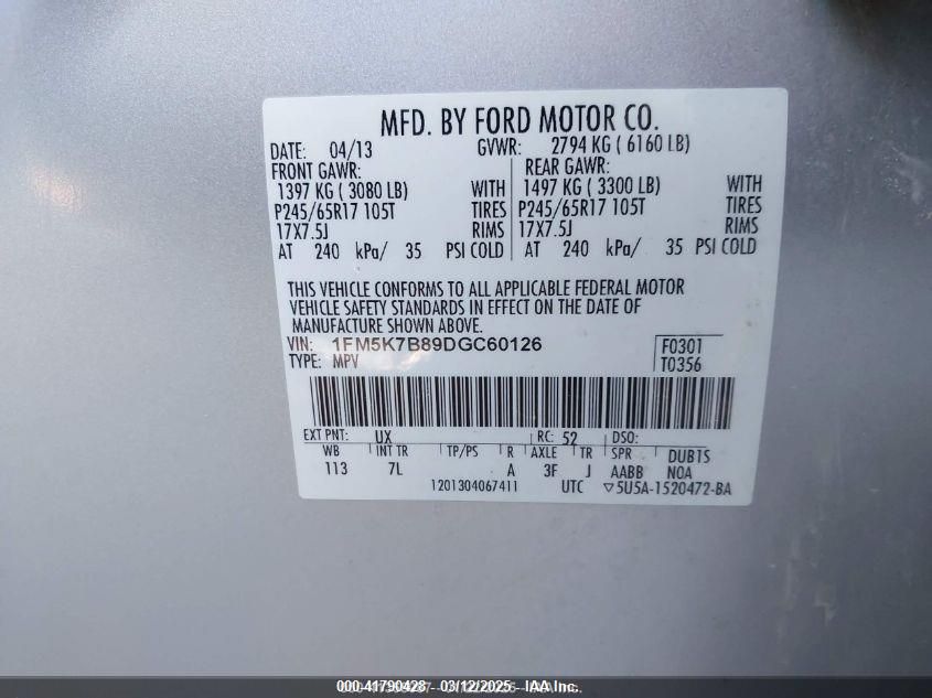 Color SilverCylinders 6Drive Front wheel driveVIN 1FM5K7B89DG******State Run & Drive VerifiedDamage Front or back AutoRIA
