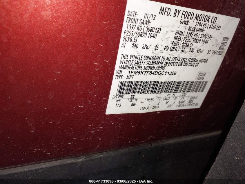 Color BurgundyCylinders 6Drive Front wheel driveVIN 1FM5K7F84DG******State Run & Drive VerifiedDamage Front or back AutoRIA