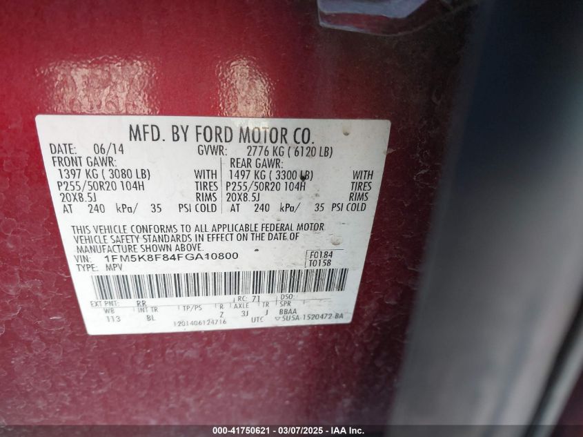 2015 FORD EXPLORER 2015 Gasoline, 3.5, Full drive, VIN - 1FM5K8F84FG****** from the USA