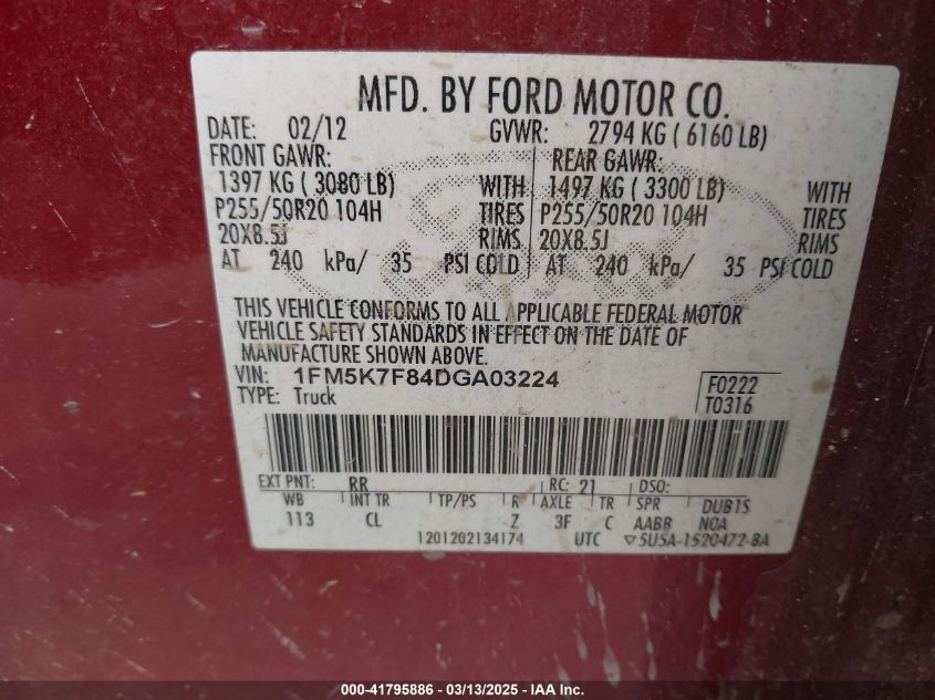 2013 FORD EXPLORER 2013 Gasoline, 3.5, Front wheel drive, VIN - 1FM5K7F84DG****** from the USA