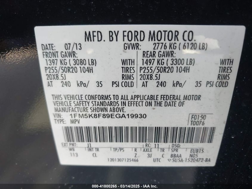 Color BrownCylinders 6Drive Full driveVIN 1FM5K8F89EG******State Run & Drive VerifiedDamage Back AutoRIA