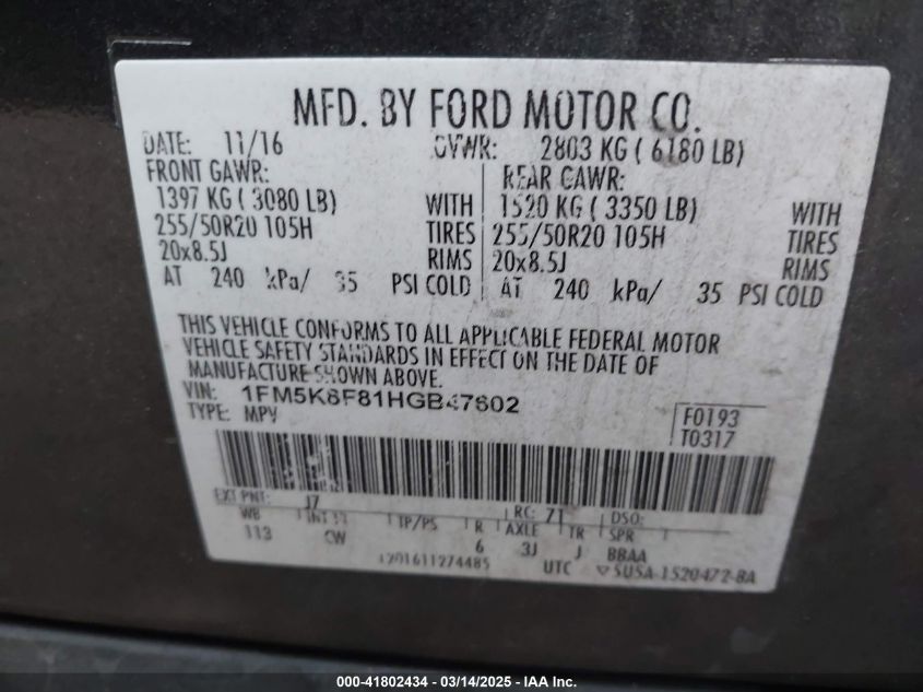 2017 FORD EXPLORER 2017 Gasoline, 3.5, Full drive, VIN - 1FM5K8F81HG****** from the USA