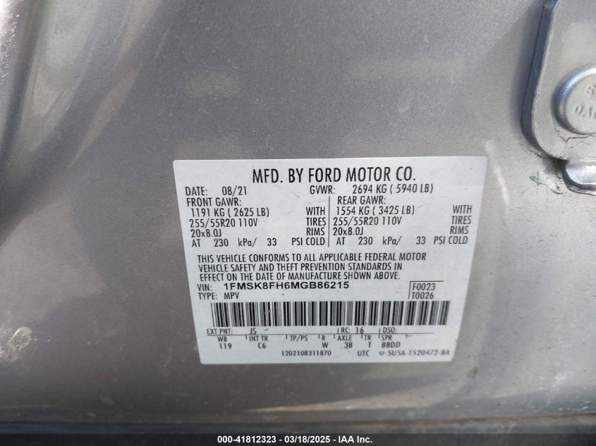 Color SilverCylinders 4Drive Full driveVIN 1FMSK8FH6MG******State Run & Drive VerifiedDamage Front left AutoRIA