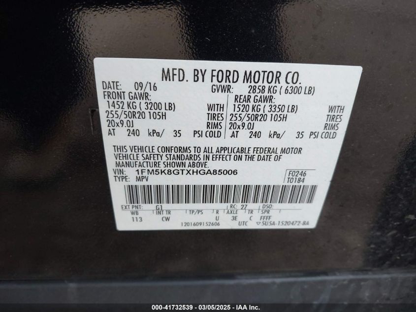 Color BlackCylinders 6Drive Full driveVIN 1FM5K8GTXHG******State Run & Drive VerifiedDamage Front left AutoRIA