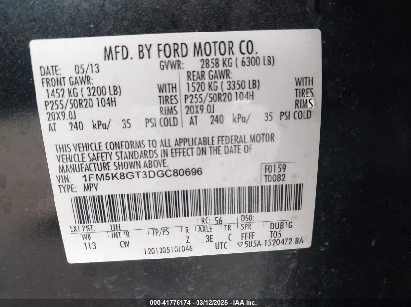 Color BlackCylinders 6Drive Full driveVIN 1FM5K8GT3DG******State Run & Drive VerifiedDamage Motor AutoRIA