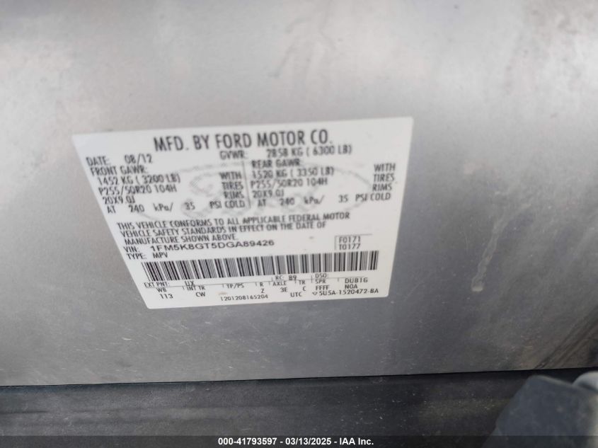 Color SilverCylinders 6Drive Full driveVIN 1FM5K8GT5DG******State Run & Drive VerifiedDamage Front or back AutoRIA