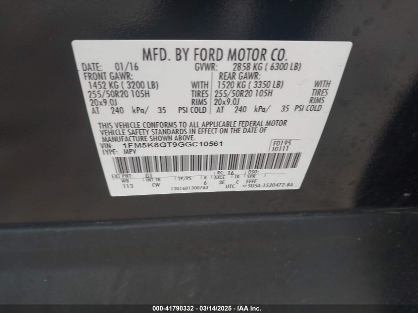 2016 FORD EXPLORER 2016 Gasoline, 3.5, Full drive, VIN - 1FM5K8GT9GG****** from the USA