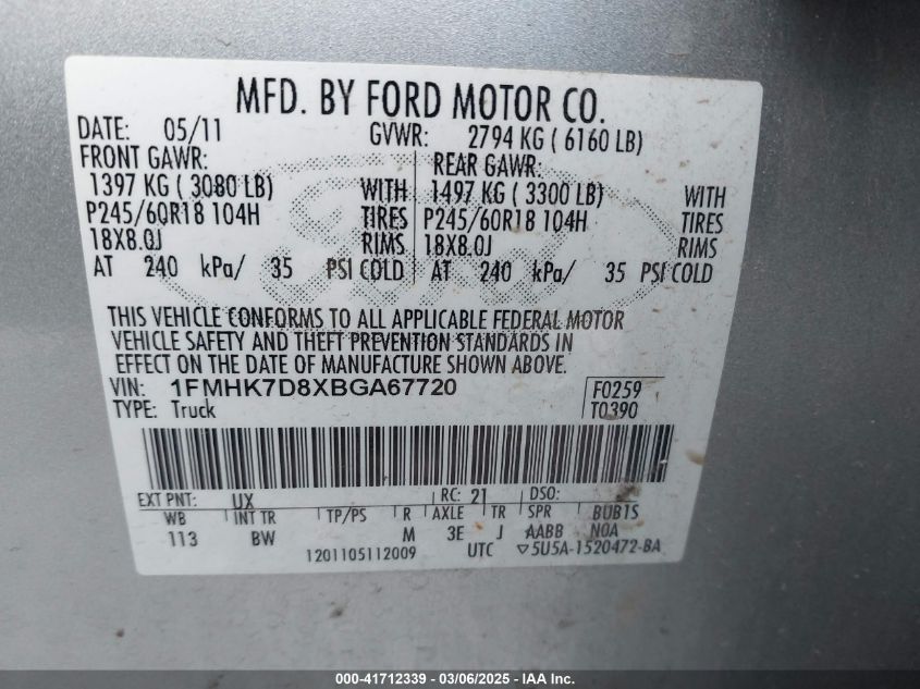 2011 FORD EXPLORER 2011 Gasoline, 3.5, Front wheel drive, VIN - 1FMHK7D8XBG****** from the USA