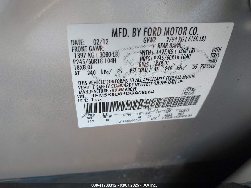 Color SilverCylinders 6Drive Full driveVIN 1FM5K8D81DG******State Run & Drive VerifiedDamage Front or back AutoRIA