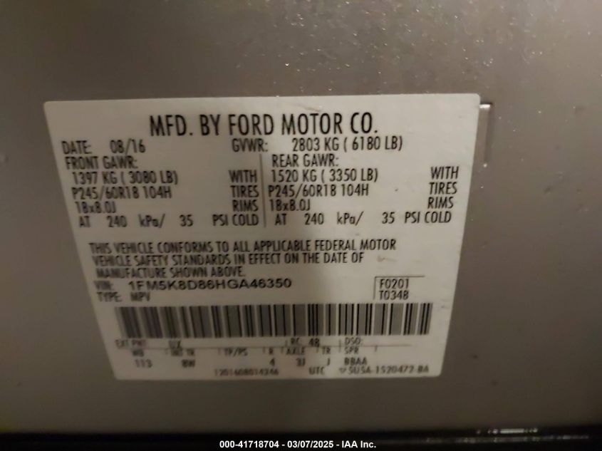 2017 FORD EXPLORER 2017 Gasoline, 3.5, Full drive, VIN - 1FM5K8D86HG****** from the USA