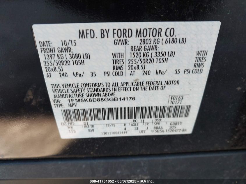 2016 FORD EXPLORER 2016 Gasoline, 3.5, Full drive, VIN - 1FM5K8D88GG****** from the USA