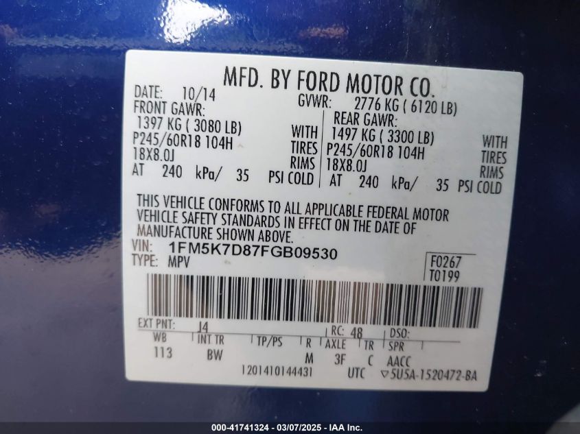 Color BlueCylinders 6Drive Front wheel driveVIN 1FM5K7D87FG******State Run & Drive VerifiedDamage Front or back AutoRIA