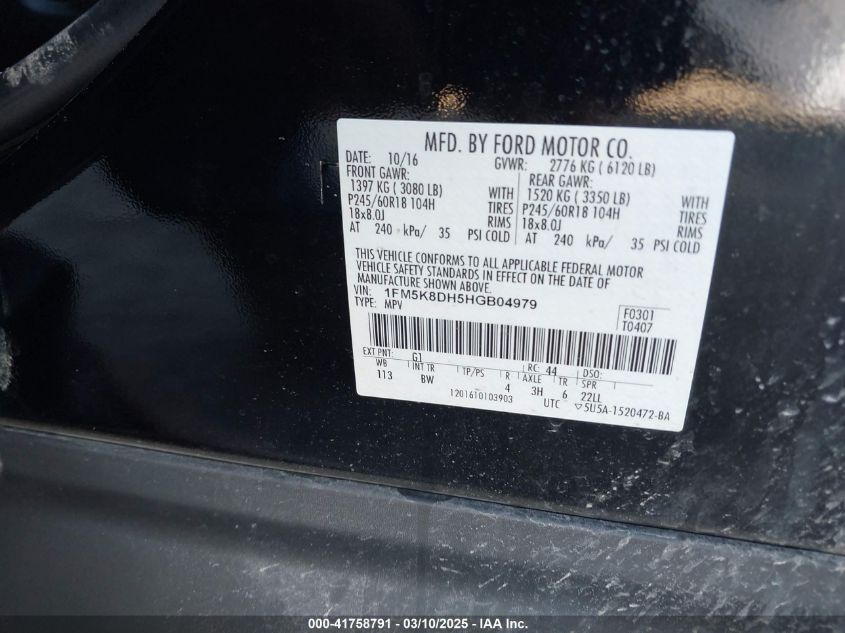Color GrayCylinders 4Drive Full driveVIN 1FM5K8DH5HG******State Run & Drive VerifiedDamage Front or back AutoRIA