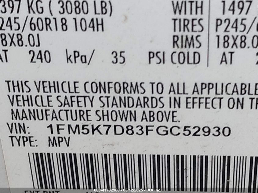 Color WhiteCylinders 6Drive Front wheel driveVIN 1FM5K7D83FG******State Run & Drive VerifiedDamage Front or back AutoRIA