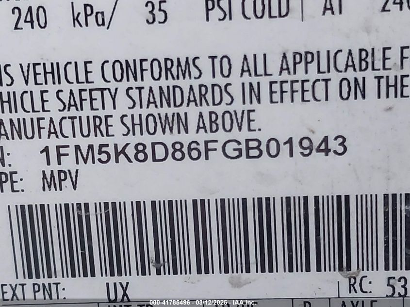 Color SilverCylinders 6Drive Full driveVIN 1FM5K8D86FG******State Run & Drive VerifiedDamage Front left AutoRIA