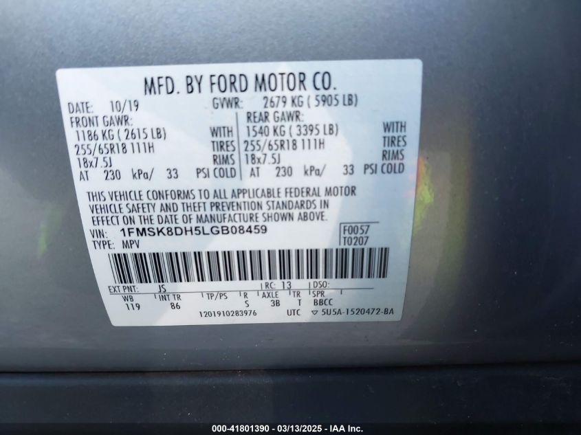 Color GrayCylinders 4Drive Full driveVIN 1FMSK8DH5LG******State Run & Drive VerifiedDamage From the sides AutoRIA