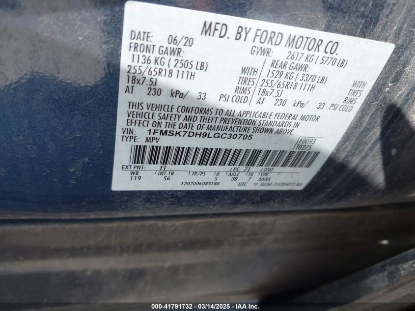 Color BlueCylinders 4Drive UnknownVIN 1FMSK7DH9LG******State Run & Drive VerifiedDamage Front right AutoRIA