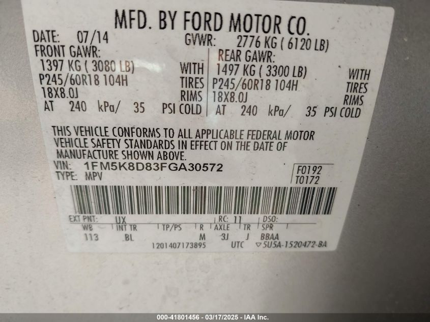 2015 FORD EXPLORER 2015 Gasoline, 3.5, Full drive, VIN - 1FM5K8D83FG****** from the USA