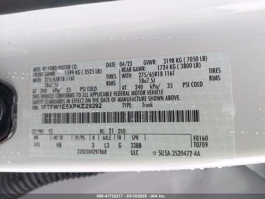 2023 FORD F-150 2023 Gasoline, 5.0, Full drive, VIN - 1FTFW1E5XPK****** from the USA
