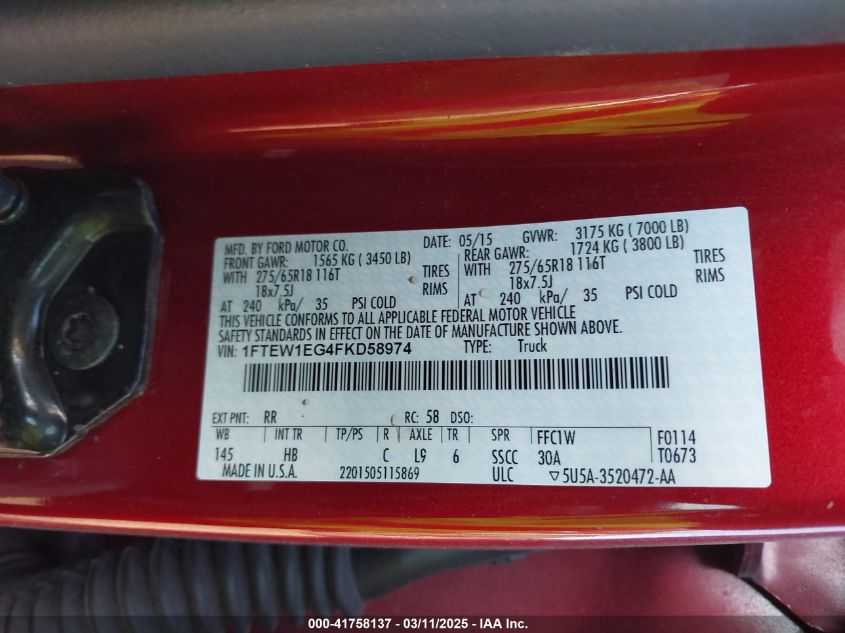 2015 FORD F-150 2015 Gasoline, 3.5, Full drive, VIN - 1FTEW1EG4FK****** from the USA