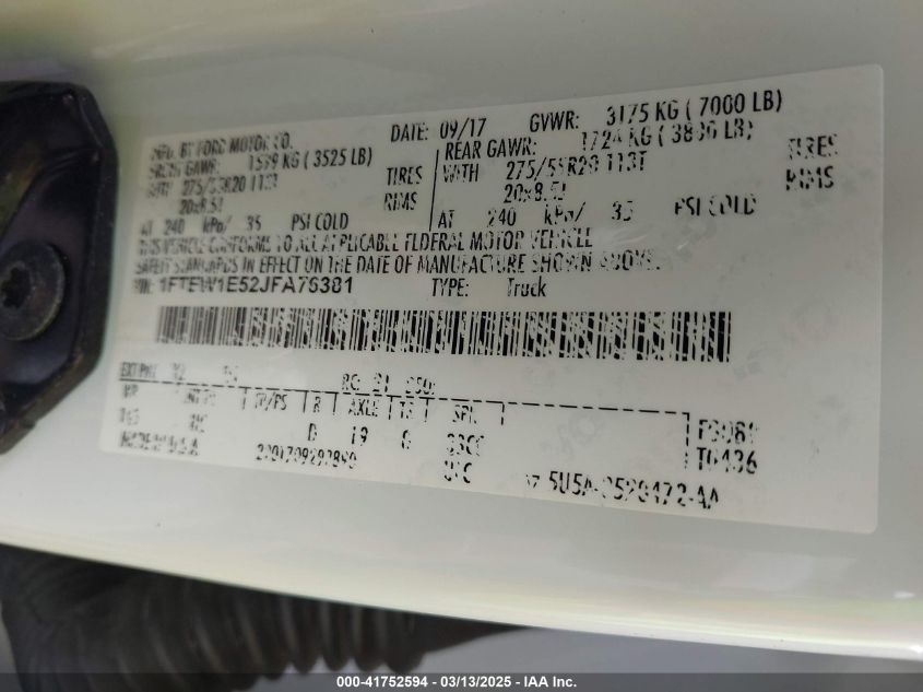 Color WhiteCylinders 8Drive Full driveVIN 1FTEW1E52JF******State Run & Drive VerifiedDamage Front or back AutoRIA