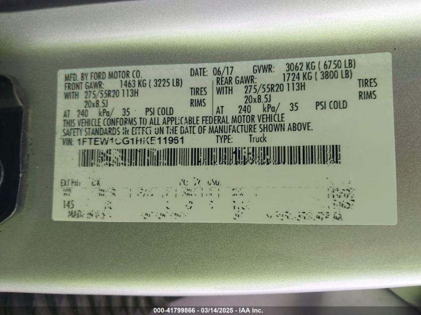 2017 FORD F-150 2017 Gasoline, 3.5, Unknown, VIN - 1FTEW1CG1HK****** from the USA