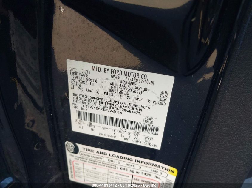 2011 FORD F-150 2011 Gasoline, 6.2, Full drive, VIN - 1FTFW1E6XBF****** from the USA
