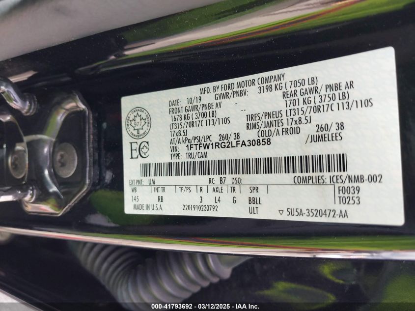 2020 FORD F-150 2020 Gasoline, 3.5, Full drive, VIN - 1FTFW1RG2LF****** from the USA
