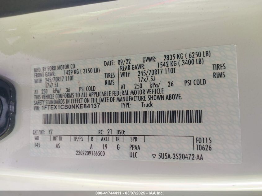 Color WhiteCylinders 6Drive UnknownVIN 1FTEX1CB0NK******State Run & Drive VerifiedDamage Right side AutoRIA