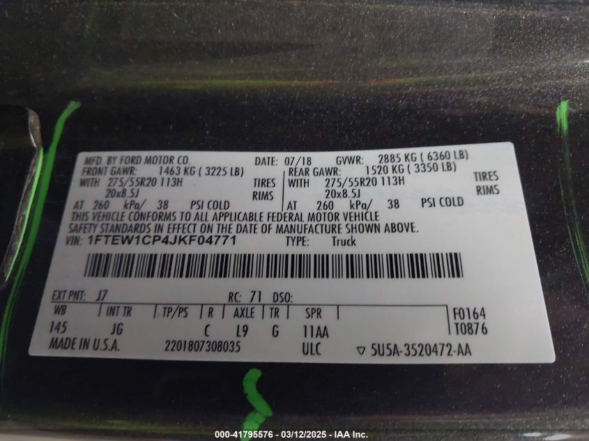 2018 FORD F-150 2018 Gasoline, 2.7, Unknown, VIN - 1FTEW1CP4JK****** from the USA