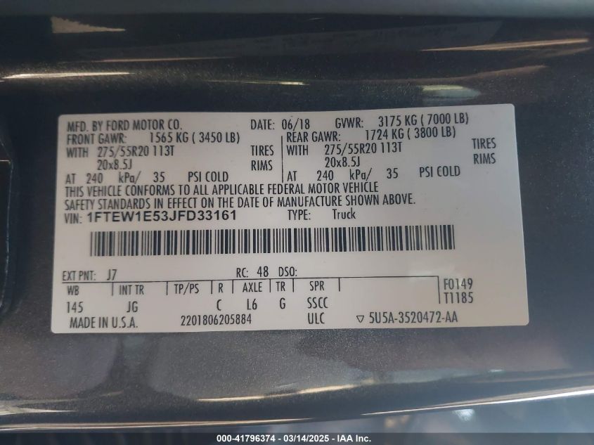 Color GrayCylinders 8Drive Full driveVIN 1FTEW1E53JF******State Run & Drive VerifiedDamage Front or back AutoRIA