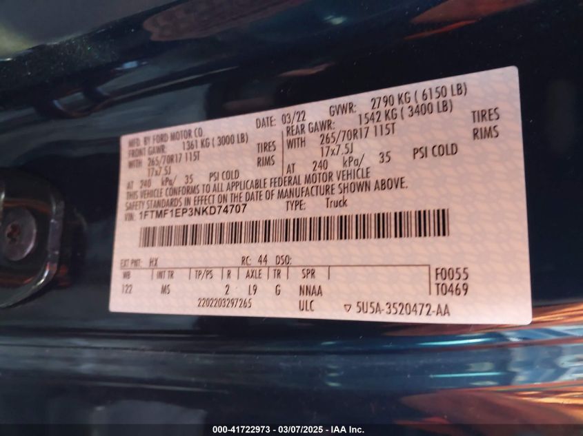 2022 FORD F-150 2022 Gasoline, 2.7, Full drive, VIN - 1FTMF1EP3NK****** from the USA