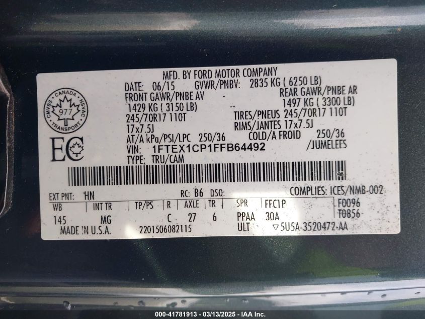 2015 FORD F-150 2015 Gasoline, 2.7, Unknown, VIN - 1FTEX1CP1FF****** from the USA
