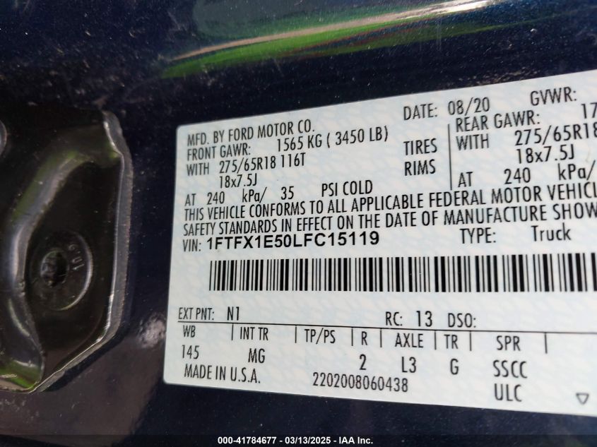 2020 FORD F-150 2020 Gasoline, 5.0, Full drive, VIN - 1FTFX1E50LF****** from the USA