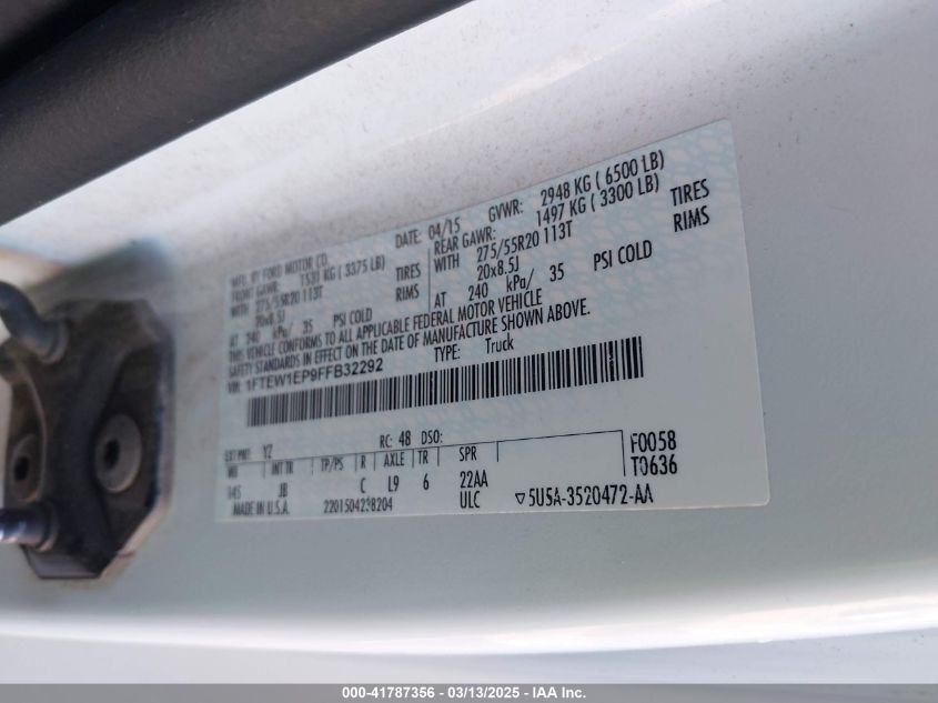2015 FORD F-150 2015 Gasoline, 2.7, Full drive, VIN - 1FTEW1EP9FF****** from the USA