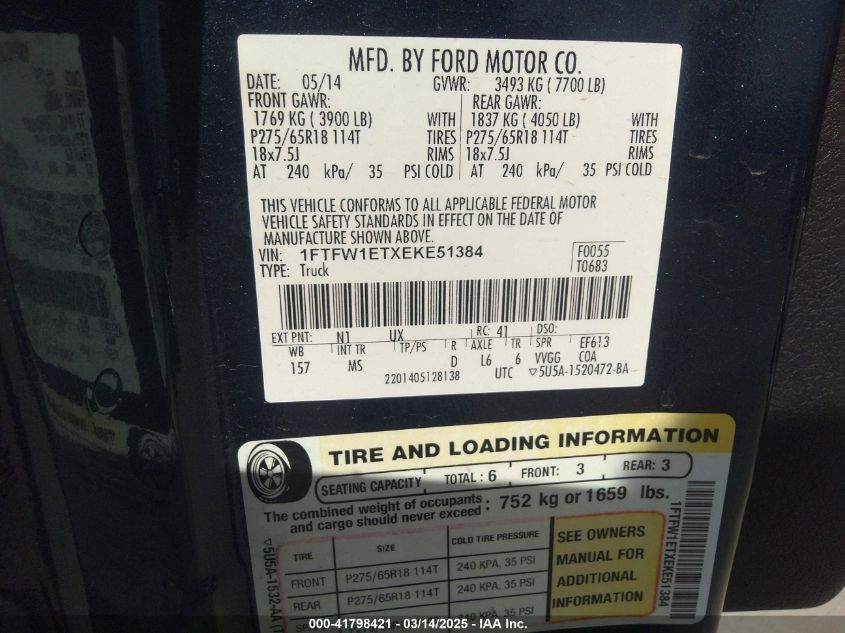 2014 FORD F-150 2014 Gasoline, 3.5, Full drive, VIN - 1FTFW1ETXEK****** from the USA