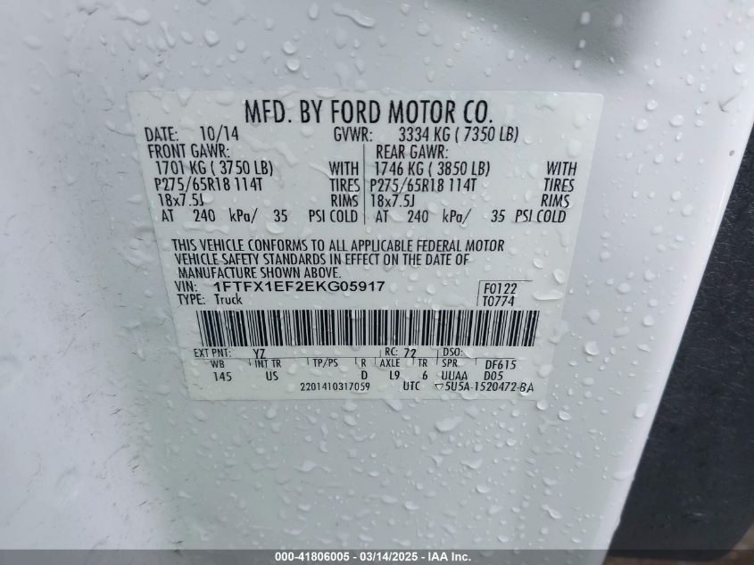 2014 FORD F-150 2014 Gasoline, 5.0, Full drive, VIN - 1FTFX1EF2EK****** from the USA