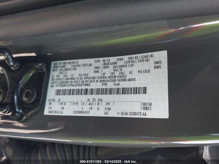 2018 FORD F-150 2018 Gasoline, 2.7, Unknown, VIN - 1FTEW1CPXJF****** from the USA