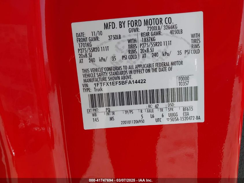Color RedCylinders 8Drive Full driveVIN 1FTFX1EF5BF******State Run & Drive VerifiedDamage Front or back AutoRIA