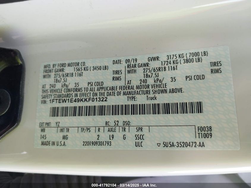 2019 FORD F-150 2019 Gasoline, 3.5, Full drive, VIN - 1FTEW1E49KK****** from the USA