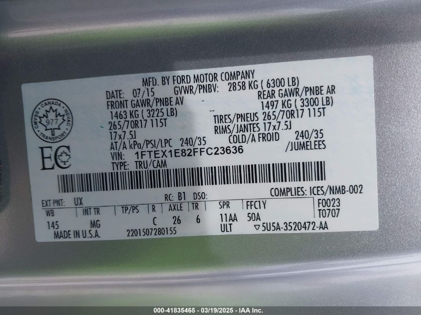2015 FORD F-150 2015 Gasoline, 3.5, Full drive, VIN - 1FTEX1E82FF****** from the USA