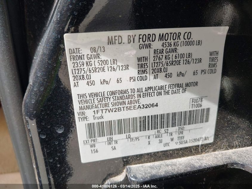 Color BlackCylinders 8Drive Full driveVIN 1FT7W2BT5EE******State Run & Drive VerifiedDamage Right side