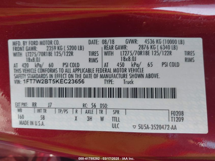 Color RedCylinders 8Drive Full driveVIN 1FT7W2BT5KE******State Run & Drive VerifiedDamage From the sides