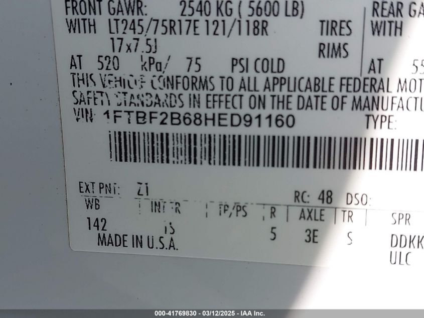 Color WhiteCylinders 8Drive Full driveVIN 1FTBF2B68HE******State Run & Drive VerifiedDamage Front or back