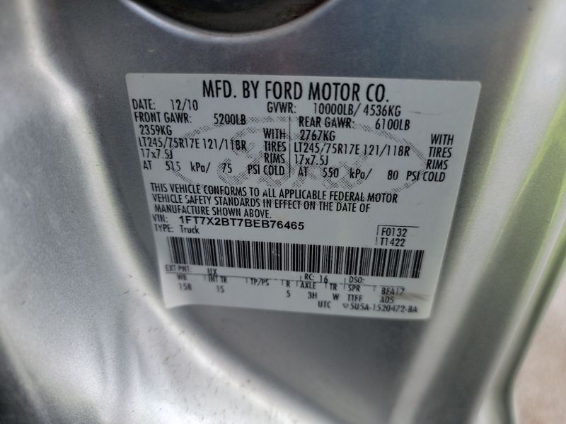 Color Cylinders 8Drive Full driveVIN 1FT7X2BT7BE******State Run & Drive VerifiedDamage Insignificant