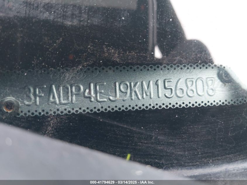 Color WhiteCylinders 4Drive Front wheel driveVIN 3FADP4EJ9KM******State Run & Drive VerifiedDamage Left side AutoRIA