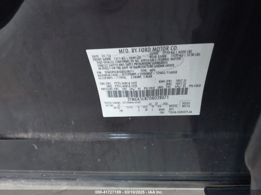 Color BrownCylinders 6Drive Front wheel driveVIN 2FMGK5C87DB******State Run & Drive VerifiedDamage Back AutoRIA