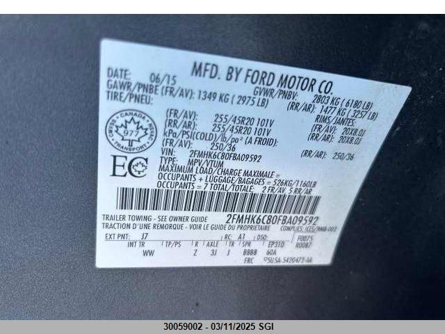 Color GrayCylinders 6Drive UnknownVIN 2FMHK6C80FB******State Run & Drive VerifiedDamage FrontAuction date 2025-03-25 AutoRIA