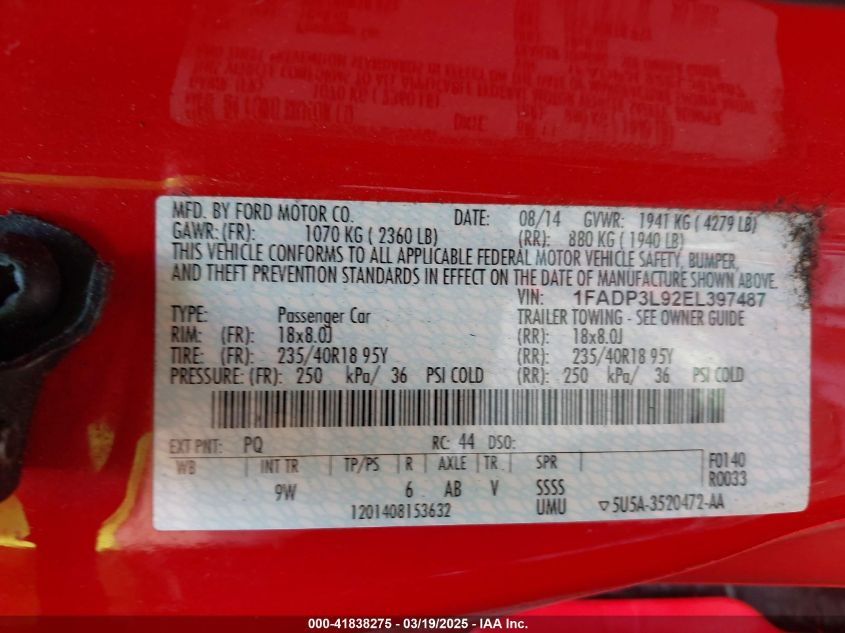 Color RedCylinders 4Drive Front wheel driveVIN 1FADP3L92EL******State Run & Drive VerifiedDamage Front or back AutoRIA