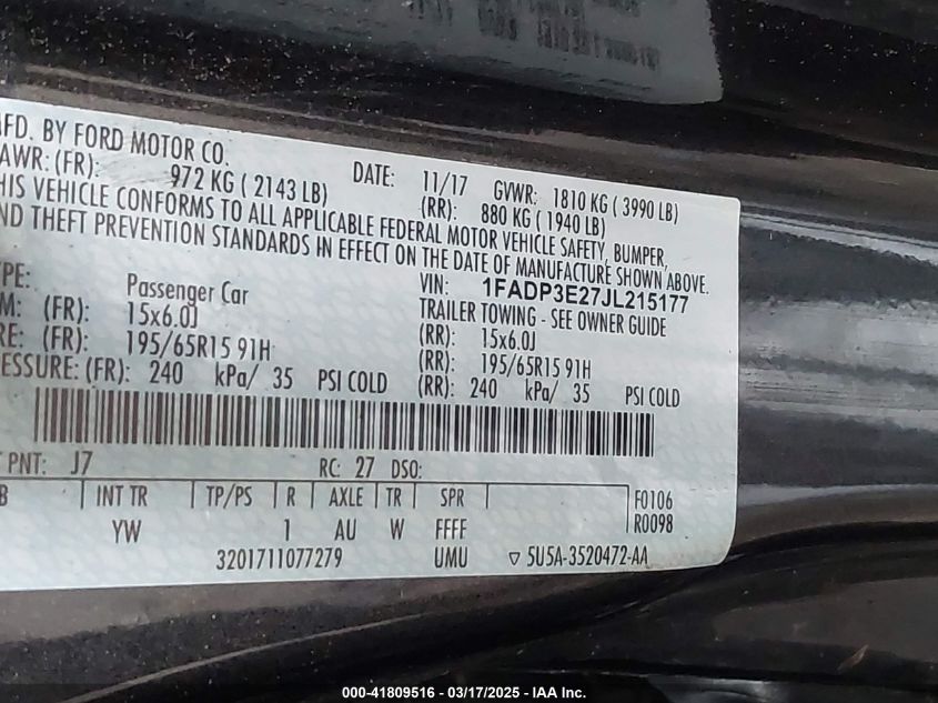Color GrayCylinders 4Drive Front wheel driveVIN 1FADP3E27JL******State Run & Drive VerifiedDamage Rear leftAuction date 2025-03-20 AutoRIA